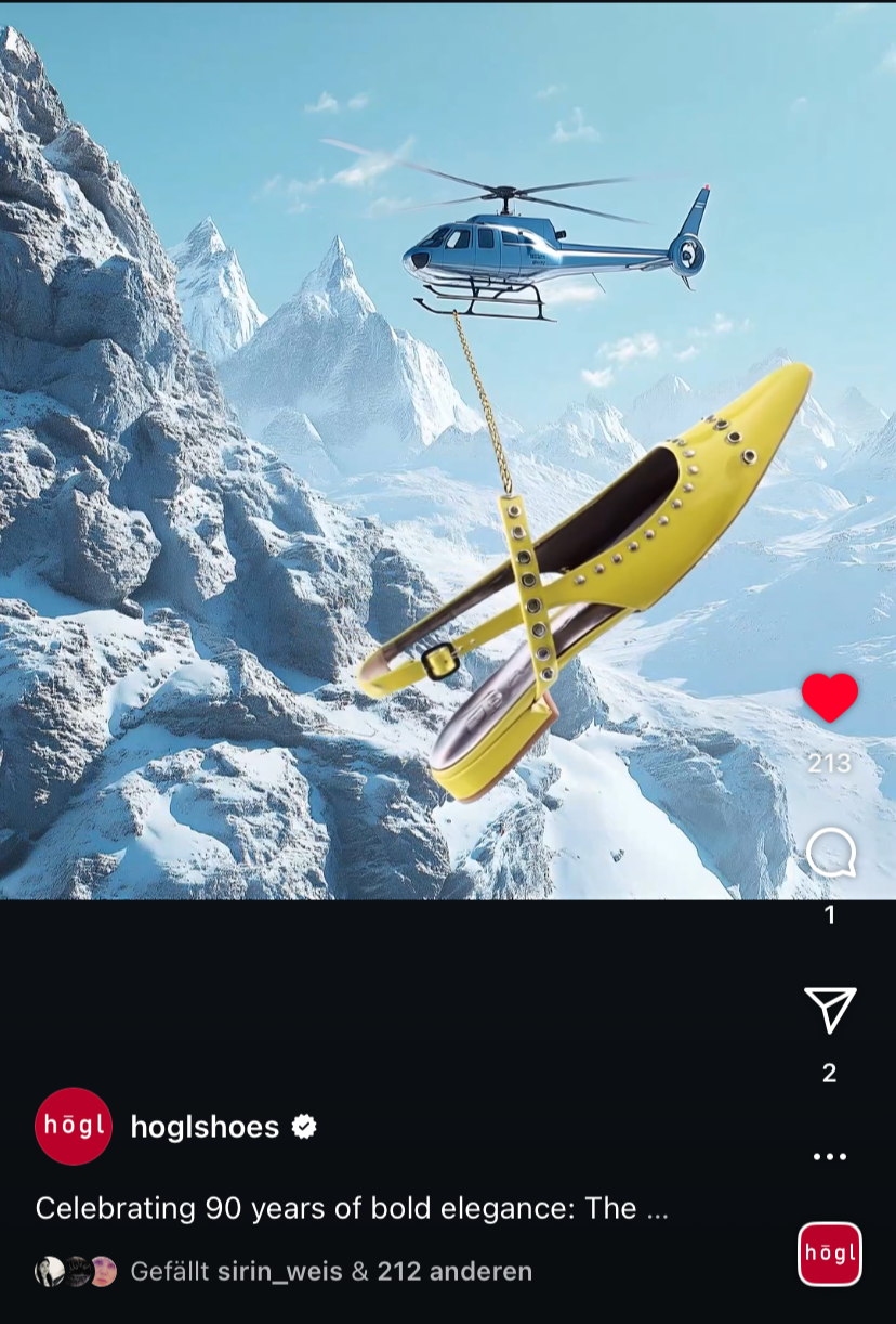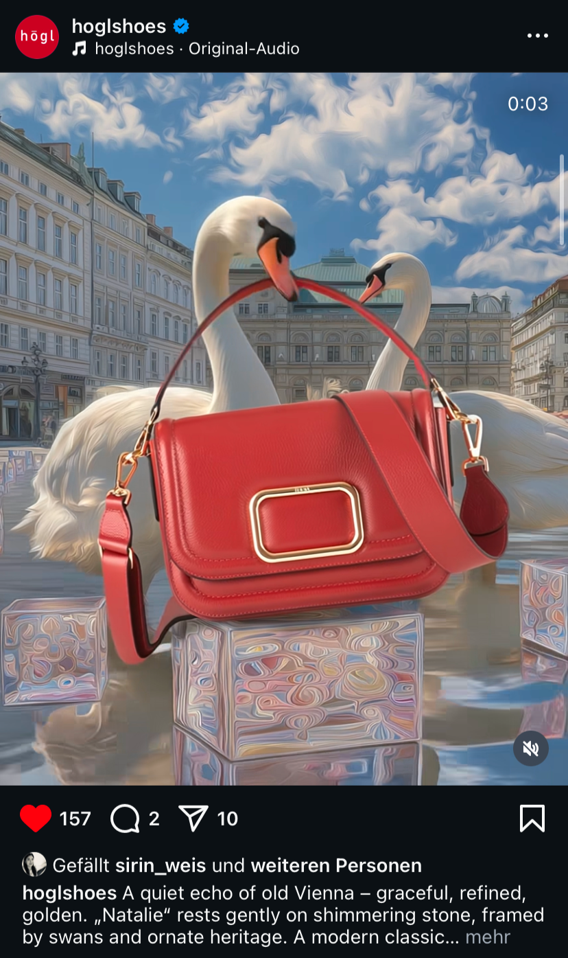 imagespy entwickelte eine KI-gestützte Kampagne, die Still-Life-Inszenierungen, Produkt-Shootings und KI-Kompositionen kombiniert. So entstand ein emotionaler, aufmerksamkeitsstarker Instagram-Auftritt, der HÖGLs Premium-Positionierung unterstreicht und die Marke als innovativen Fashion-Brand sichtbar macht.